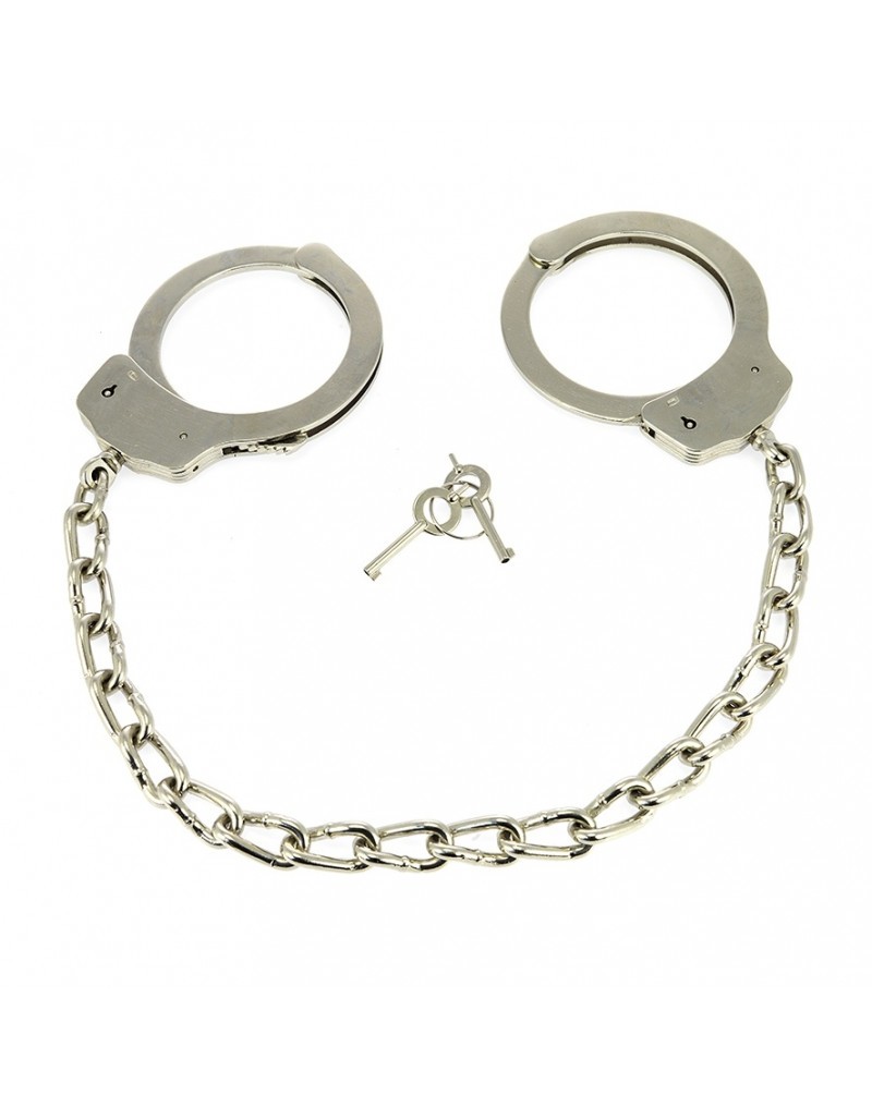 Massief metalen politie voet boeien met ketting van 38 cm lang en 2 sleuteltjes