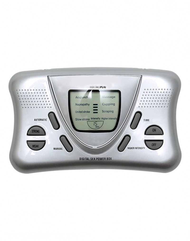 Deze powerbox wordt geleverd met 4 zelfklevende gelpads, kabels. Je kunt maar liefst 7 verschillende programma's uitproberen en 16 intensiteitsstanden. Je kunt de powerbox zelf compleet bedienen of de automatische knop gebruiken. De powerbox zendt elektrische schokjes uit via de gelpads, die je van tevoren op jouw lichaam of het lichaam van je partner plakt. De elektrodes kun je op bijna elke plek op het lichaam gebruiken. Regel zelf de intensiteit van de stroomstootjes met de drukknoppen. De powerbox heeft 2 kanalen, waardoor je twee elektronische accessoires tegelijk kunt gebruiken.