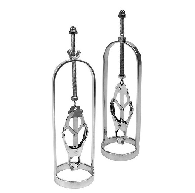 Ideaal voor het voorspel: deze set tepelstretchers. Klem de tepels van je partner vast met hoogwaardige vlinderklemmen die niet los kunnen schieten. Draai nu voorzichtig de schroef aan en zie hoe de tepelstretcher zijn werk doet. Bespreek hoe ver je wilt / kunt gaan met je partner voor je begint. Deze tepelklemmen met schroef zijn gemaakt van roestvrij staal. Hierdoor zal je de tepelklemmen veel kunnen gebruiken zonder zichtbare schade aan het product.